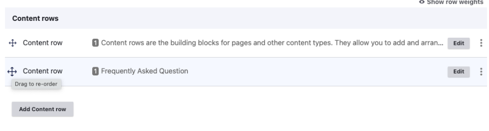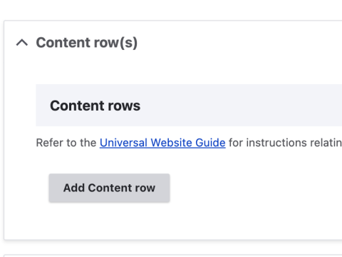 Content rows are the building blocks for pages and other content types. They allow you to add and arrange content in various formats on a page/node. You can rearrange and add as many as you like until you have the desired layout.