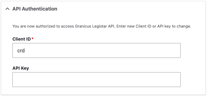 Enter the client id for Granicus Legistar